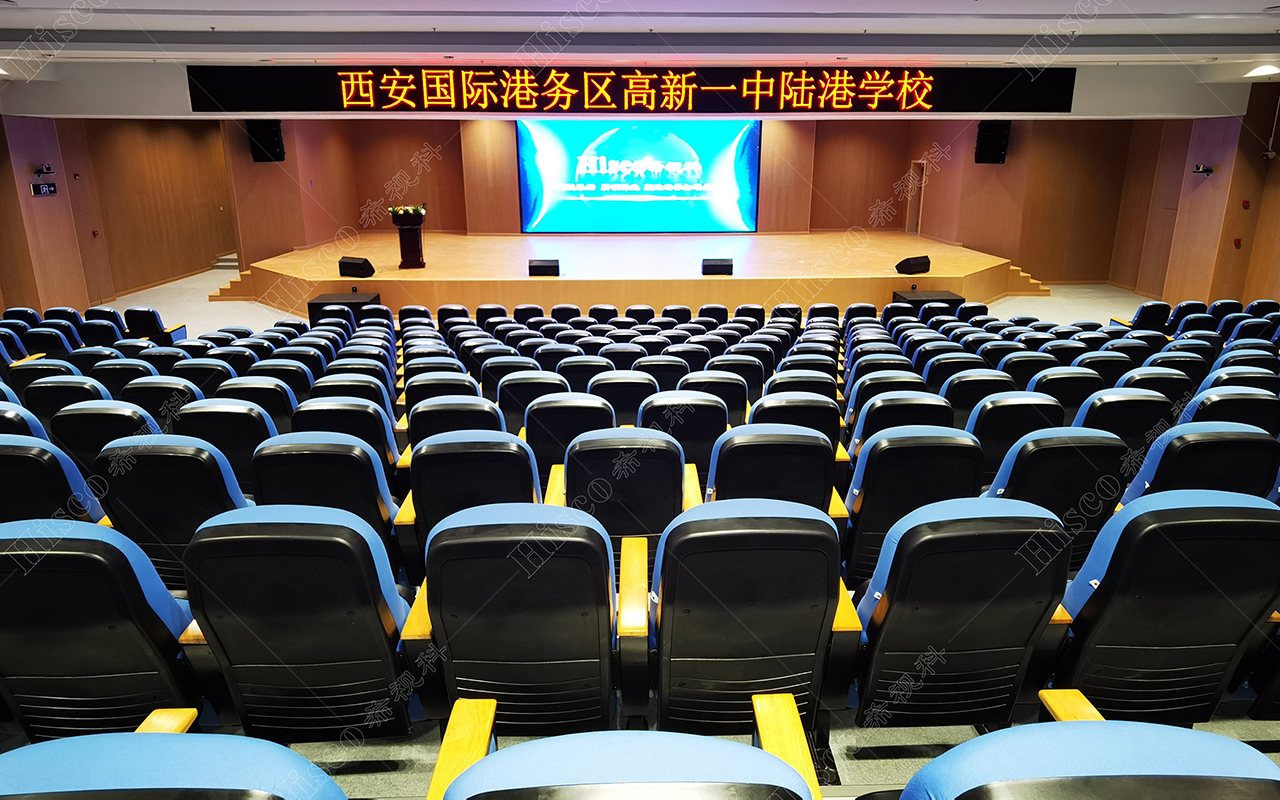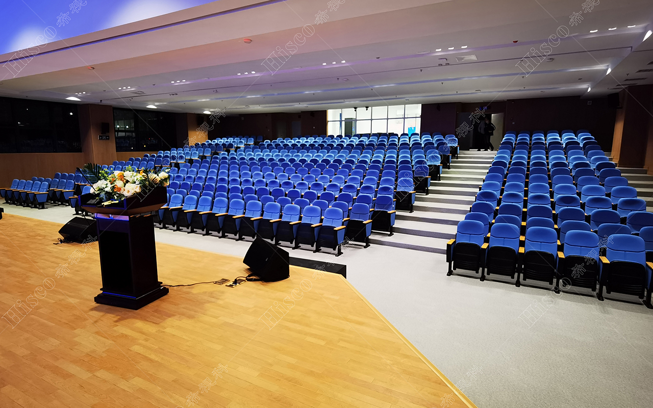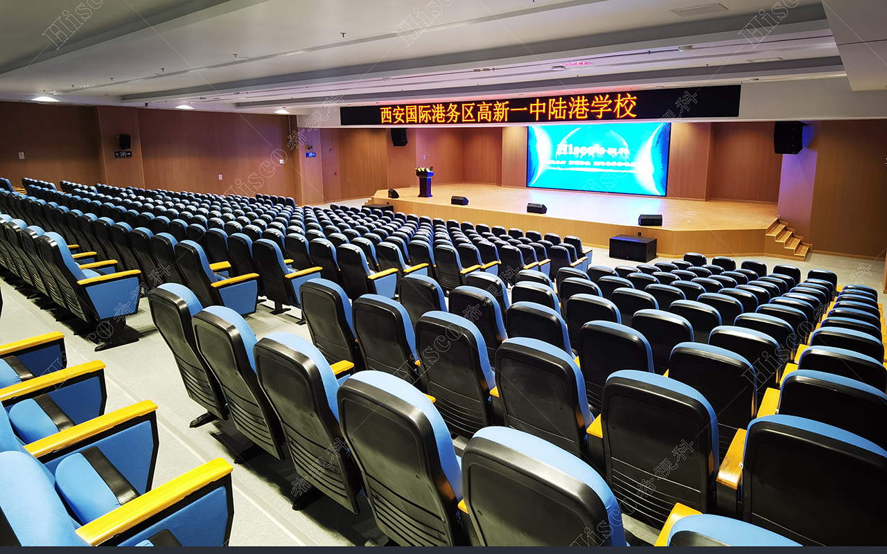 本校报告厅是一个中大型报告厅,主要为举办学校学术会议、演讲、公共大课培训及各种文艺演出,根据其建筑结构特点和使用功能及国家相关标准,根据面积和观看距离选择合适的LED大屏,展现整个舞台的宏伟大气;扩声采用集中与扩散相结合的扩声方式,开会和报告时采用单声道集中扩声还原模式,所有音源都从主席台发出,声像的平衡、方位无倾斜,保证了下面学生听到的直达声响度和均匀度达到要求,让学生听的适宜和舒服。演出时采用左右立体声空间成像模式,直达声与辅助音箱的效果声相结合表演,传达表演意境,使得演员和观众之间产生一种无声的交流。