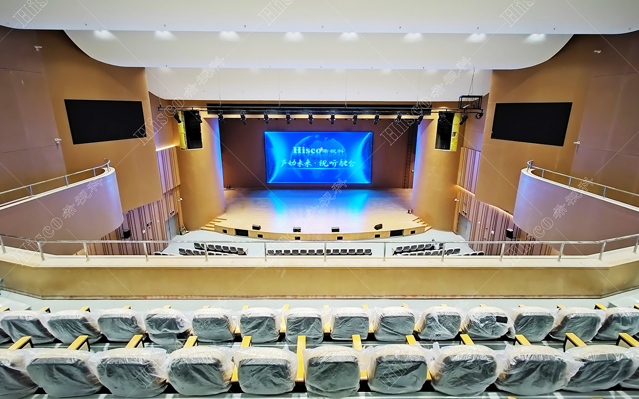 本校报告厅是一个中大型报告厅,主要为举办学校学术会议、演讲、公共大课培训及各种文艺演出,根据其建筑结构特点和使用功能及国家相关标准,根据面积和观看距离选择合适的LED大屏,展现整个舞台的宏伟大气;扩声采用集中与扩散相结合的扩声方式,开会和报告时采用单声道集中扩声还原模式,所有音源都从主席台发出,声像的平衡、方位无倾斜,保证了下面学生听到的直达声响度和均匀度达到要求,让学生听的适宜和舒服。演出时采用左右立体声空间成像模式,直达声与辅助音箱的效果声相结合表演,传达表演意境,使得演员和观众之间产生一种无声的交流。